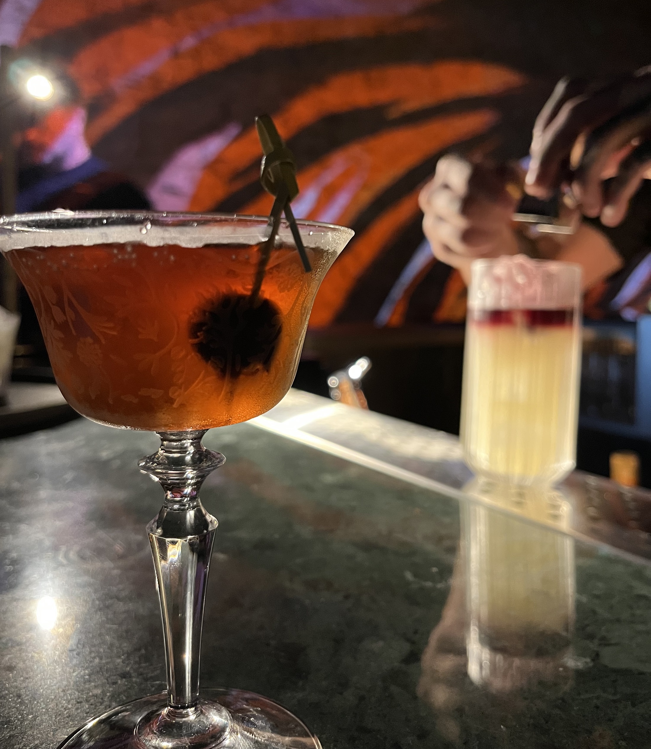 Das Ambiente ist modern, intim und kosmopolitisch, geprägt von warmem Licht und stilvollen Details. Der Service wirkt aufmerksam und kenntnisreich, insbesondere bei der Beratung zu Cocktails. Kulinarisch bleibt das Konzept bewusst reduziert und fokussiert auf hochwertige Bar-Küche. Preisniveau €€–€€€, passend zum anspruchsvollen Cocktailkonzept.